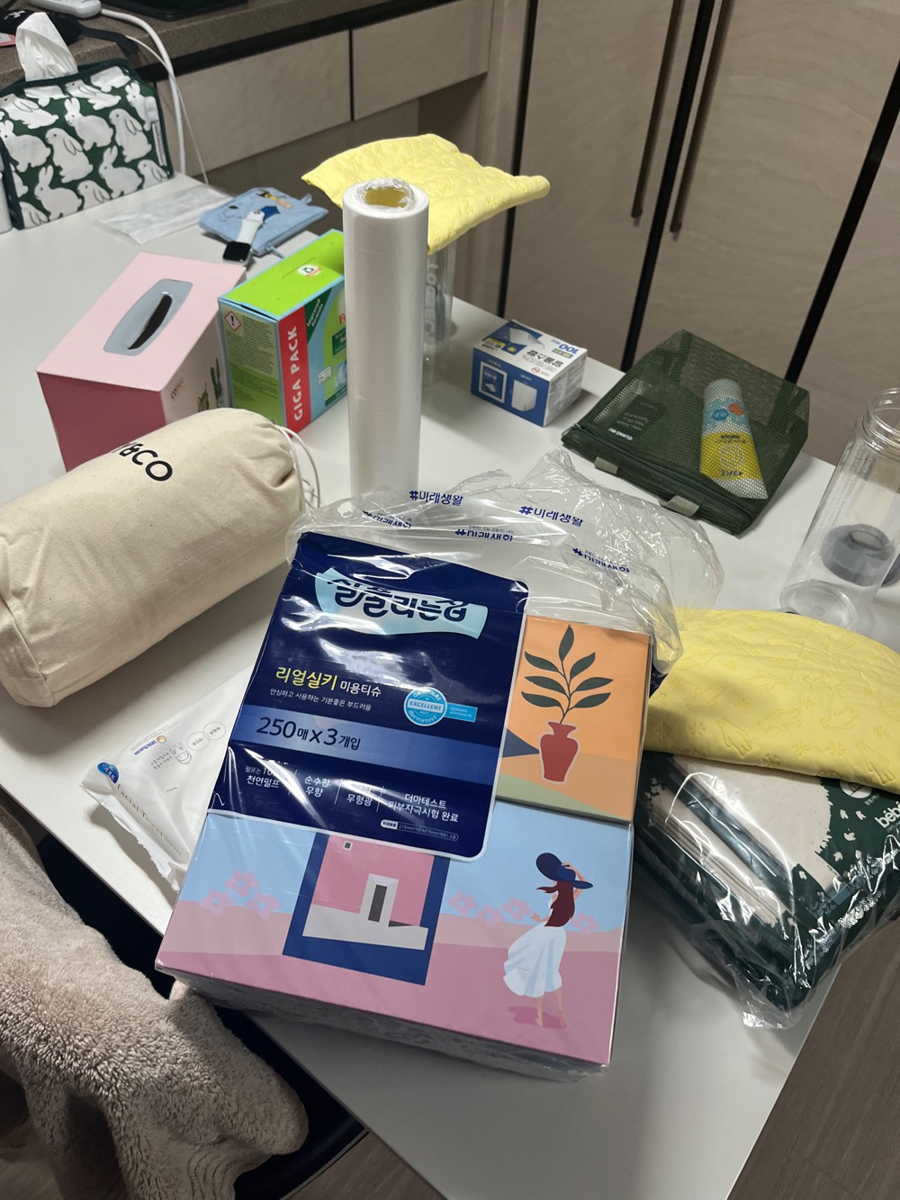 병원 입원을 위해 베개와 담요 그리고 일회용 수건과 스포츠타월까지 구매하였다. 다행히 입원 전날 모두 도착해서 필요한 물품들을 준비할 수 있었다.