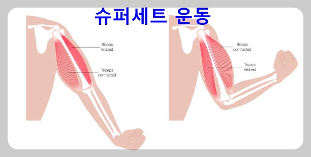 슈퍼세트는 주동 그-길항근 근육운동을 하나의 세트로 묶어서 휴식시간 없이 번갈아 하는 운동으로