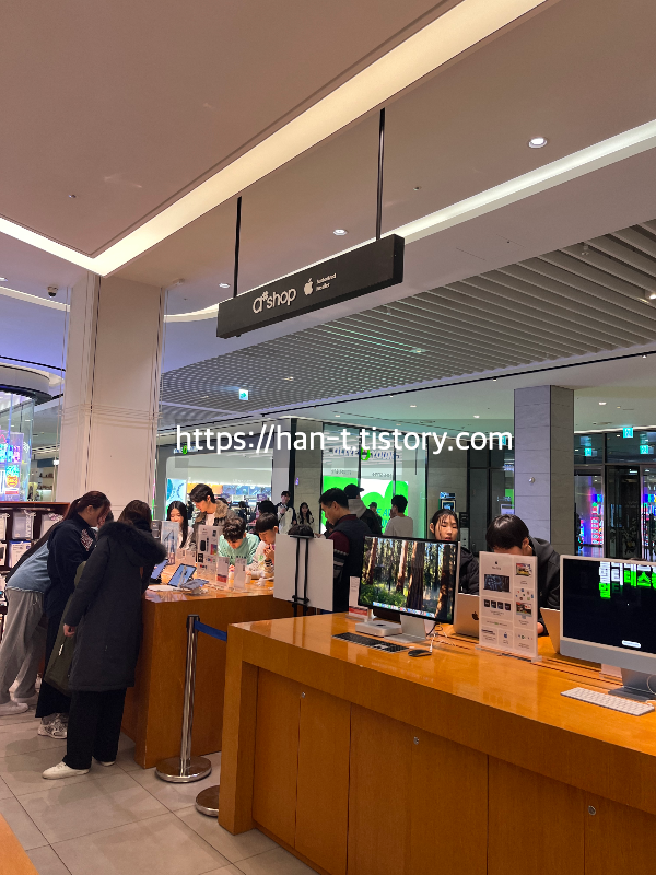 한번 더 아이폰 16을 만져보면서 사진화질과 정보를 확인하고 싶었는데, 높은 인기에 아이폰 16이 있는 데스크로에는 사람들로 붐볐습니다.
