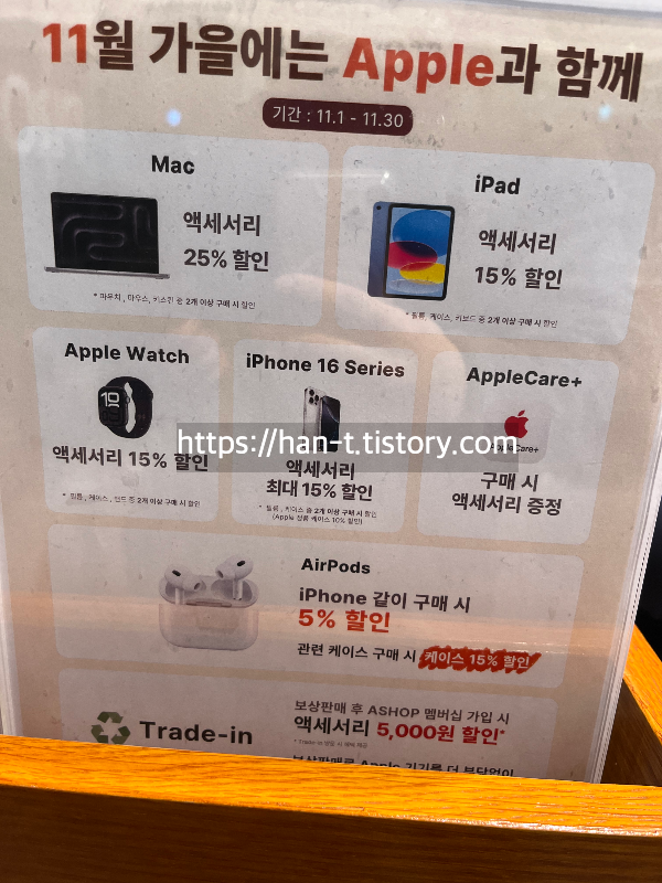 아이폰 16 구매하면 애플정품 액세서리 5% 할인, 비 정품은 15% 할인적용,애플 제품과 시제품이 같이 있어 직원추천을 받고 약정필름과 투명케이스를 구매하였다.