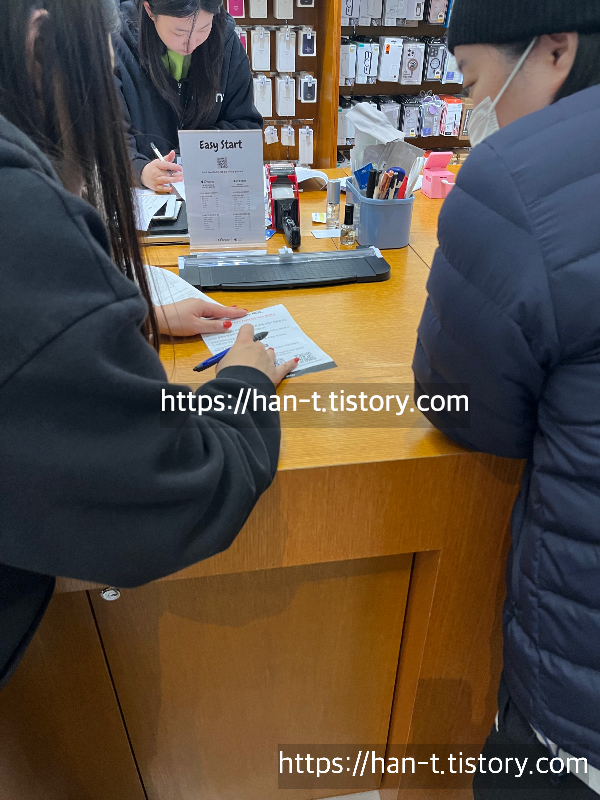 구매가 완료되면 환불정책과 구매와 관련되어 설명해 주며 서명을 합니다.