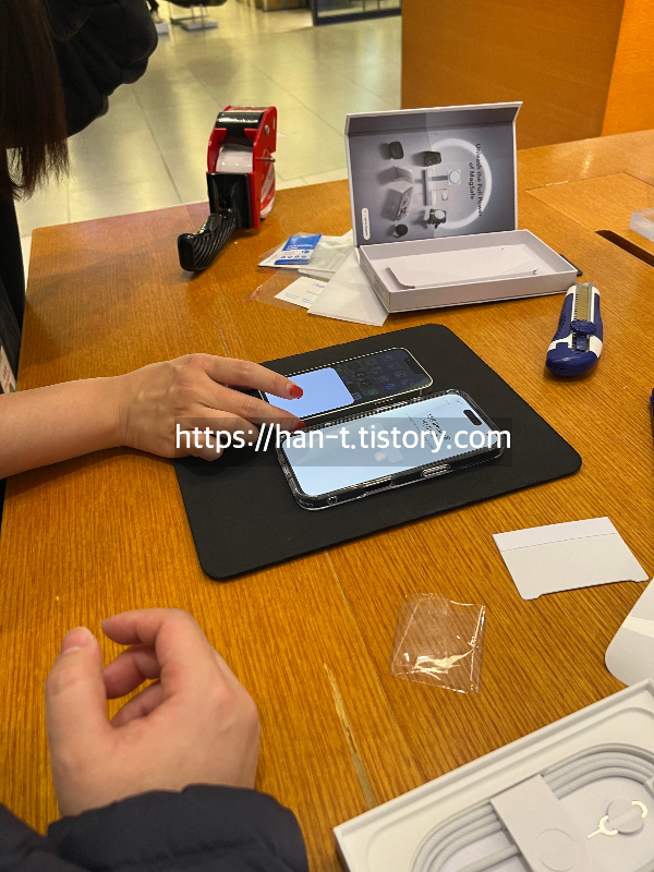 아이폰 16 구매하면 애플정품 액세서리 5% 할인, 비 정품은 15% 할인적용,애플 제품과 시제품이 같이 있어 직원추천을 받고 약정필름과 투명케이스를 구매하였다.