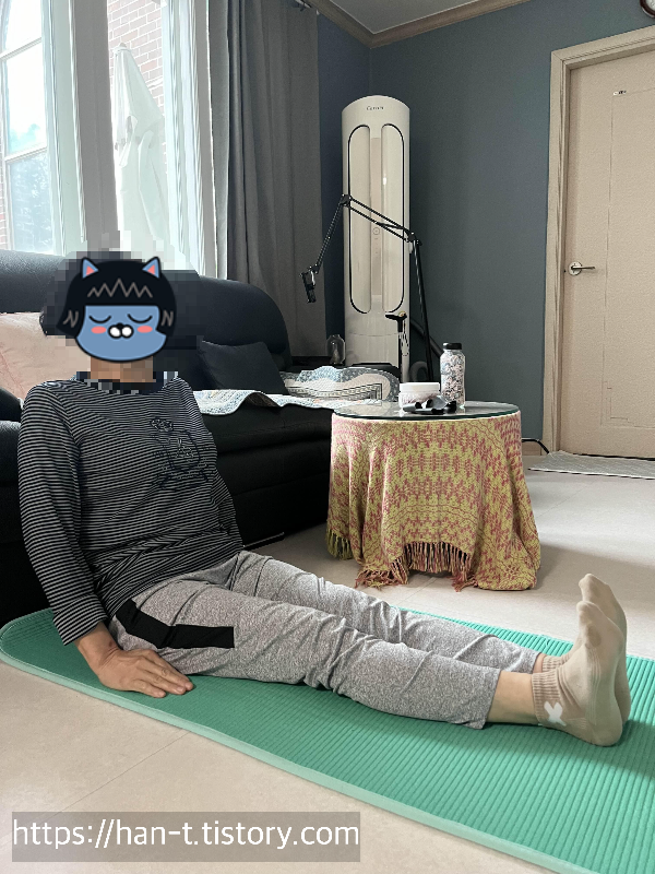 누운 자세의 스트레칭은 허리에 무리를 주지 않으며 다른 근육과 관절의 참여를 최소화하기 때문에 원하는 부위의 근육을 타깃스트레칭에 좋습니다.