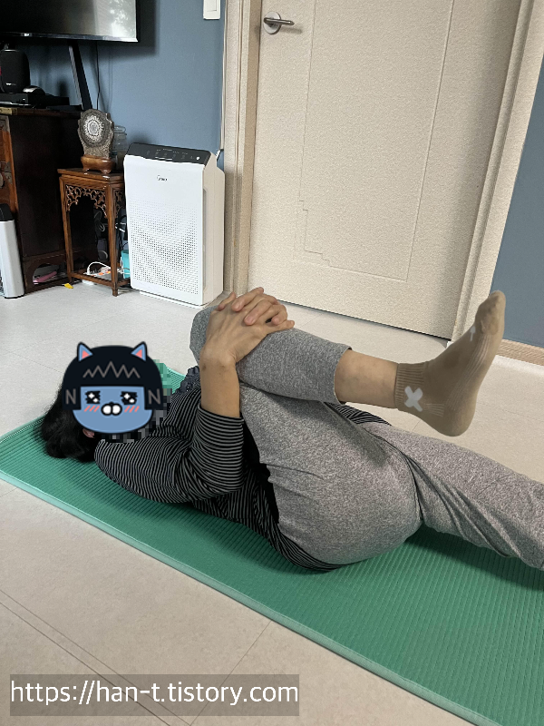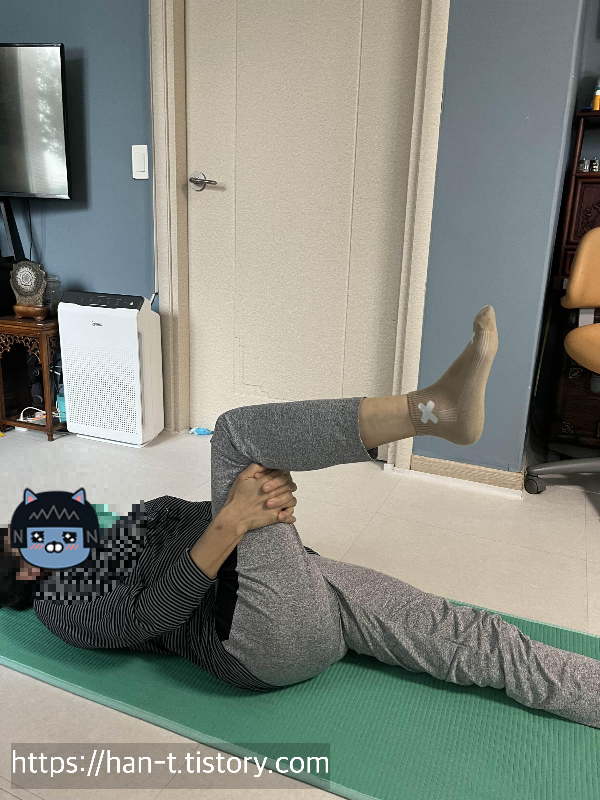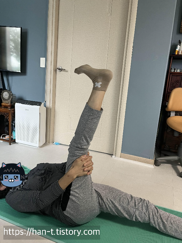 누운 자세의 스트레칭은 허리에 무리를 주지 않으며 다른 근육과 관절의 참여를 최소화하기 때문에 원하는 부위의 근육을 타깃스트레칭에 좋습니다.
