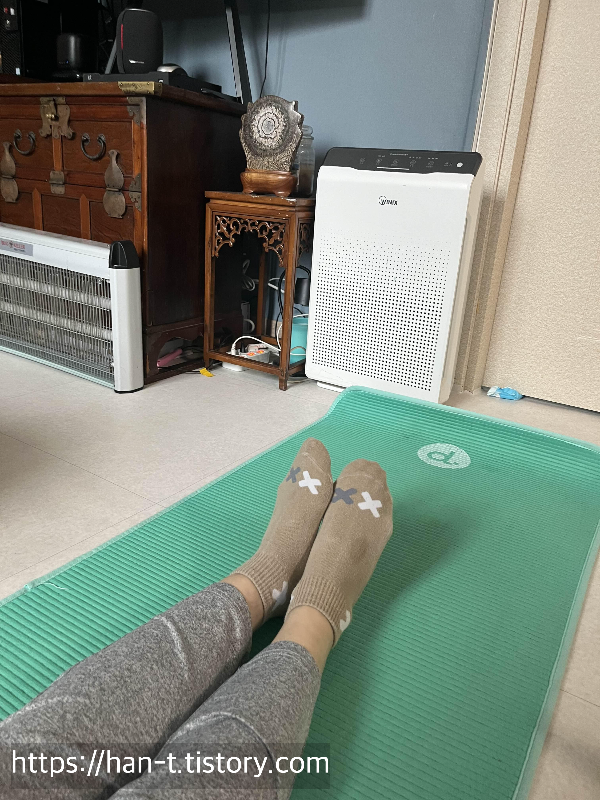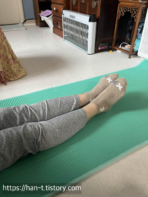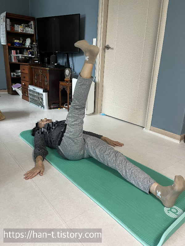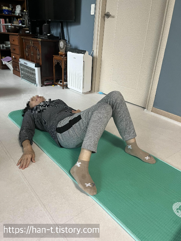- 주의사항: 뒤꿈치 닿기 운동을 하는 동안 허리가 바닥에서 들리지 않도록 배에 힘을 잘 주셔야 합니다.