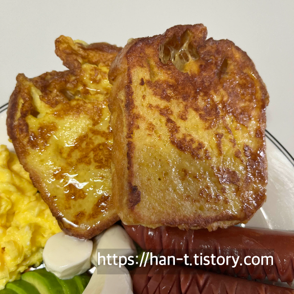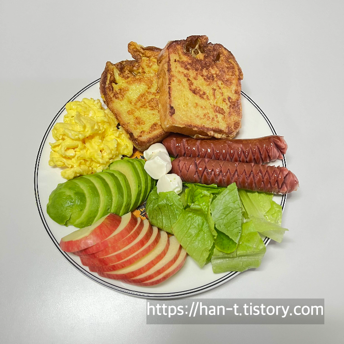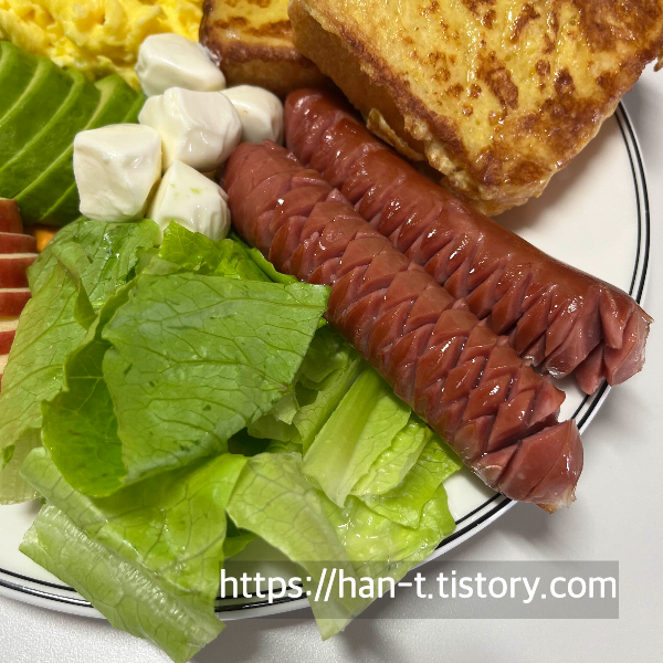 기본적인 브런치 재료인 토스트와 에그스크램블 그리고 프랭크소시지를 메인으로 만들었습니다.