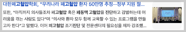 실제로 폐동맥을 진단하기 위한 여러 가지 검사를 진행하여 폐동맥의 고혈압을 진단받았습니다.