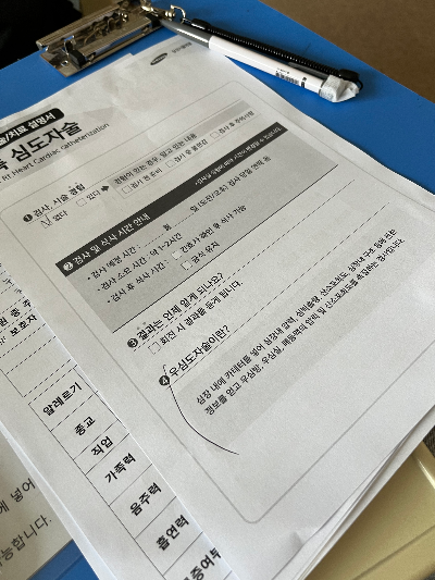 검사시간은 30~60 정도 소요된다고 들었으나 나 같은 경우에는 운동부하검사를 진행하여 1시간 조금 넘게 걸렸다.
