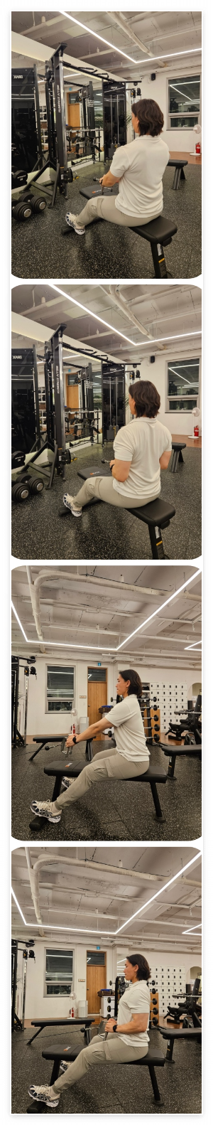 - 운동하는 동안 등 중앙에 힘이 들어가도록 집중해 주세요